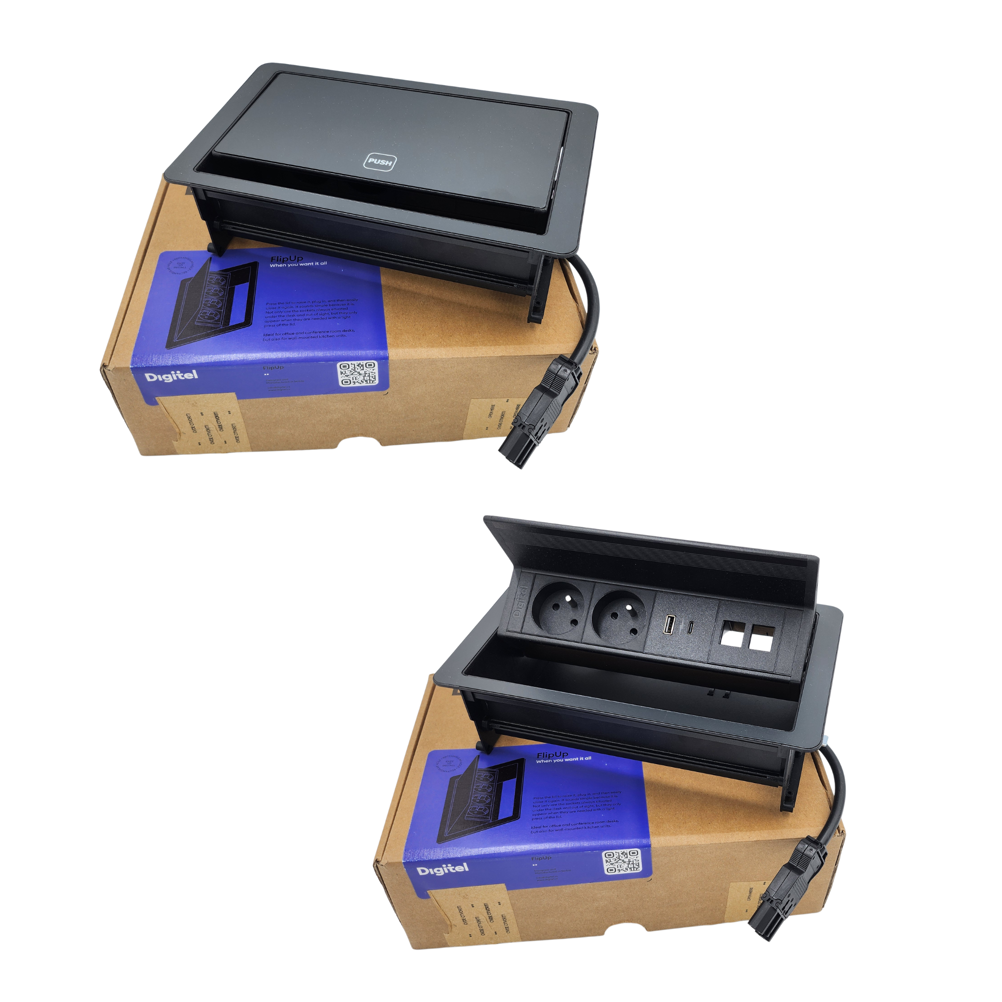 FlipUpPush 2x2P+T + 2 usb C&A + 2 ports RJ45 non équipé DIGITEL Référence : DGFLIPUPPUSH Gencod : 2100000290857 Hors stock Dernière mise à jour le 20/04/2026 Habituellement réapprovisionné en 0 jours Voir le stock disponible pour toutes les agences